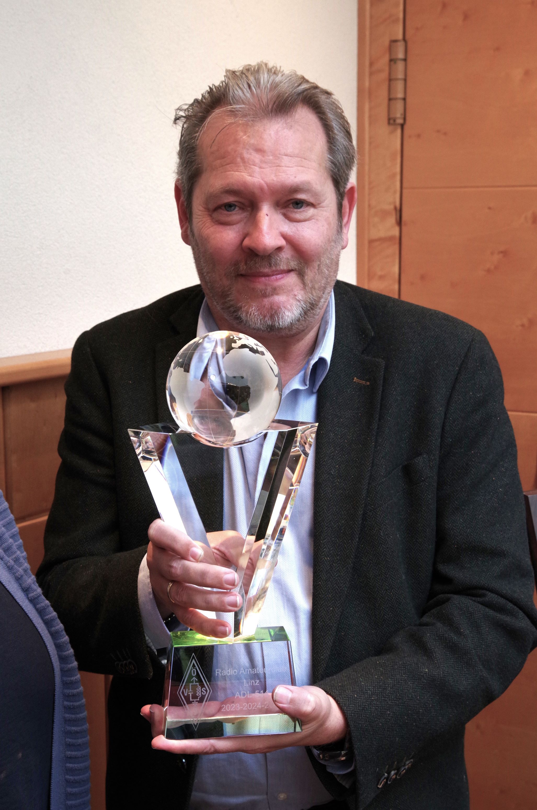 Die Preisverleihung der UKW-Meisterschaft 2025 war wieder der letzte Punkt des UKW-Treffens. Hervor heben möchte ich den Radio Amateurclub Linz, ADL-514, der wieder die ADL-Wertung gewonnen hat! Wolfgang, OE5BWN, in Vertretung von Erwin, OE5ERN, hat für die Jahre 2023-2025 den personalisierten Glaspokal mit Weltkugel übernommen. Die Gratulation ergeht an alle Aktiven vom ADL-514, aber auch allen anderen Contesterinnen und Contester spreche ich meinen Dank und Anerkennung ihrer Leistungen aus!