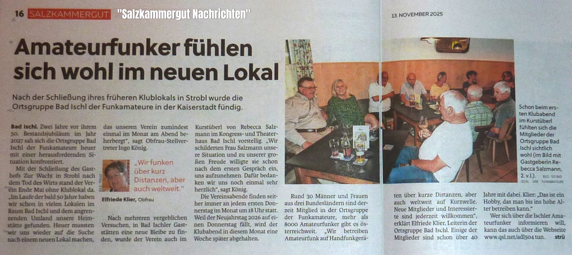 13.11. "Salzkammergut Nachrichten": Amateurfunker fühlen sich wohl im neuen Lokal - dks Ingo, OE2IKN ♦